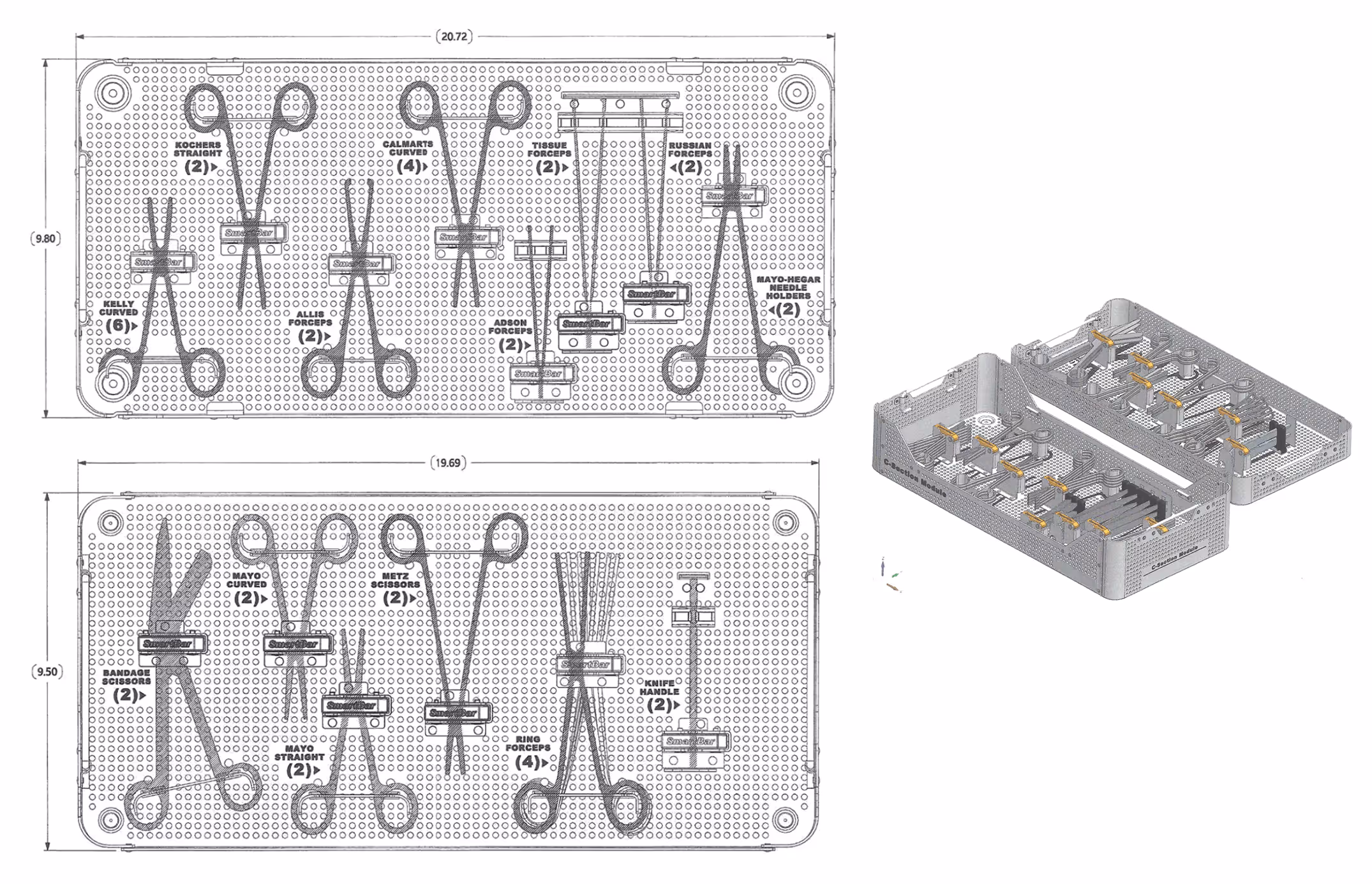 Smart Bars are at the heart of SmartTrays, giving instant feedback on whether all instruments are accounted for. Each bar is based on the instrument brand, model, and quantities.