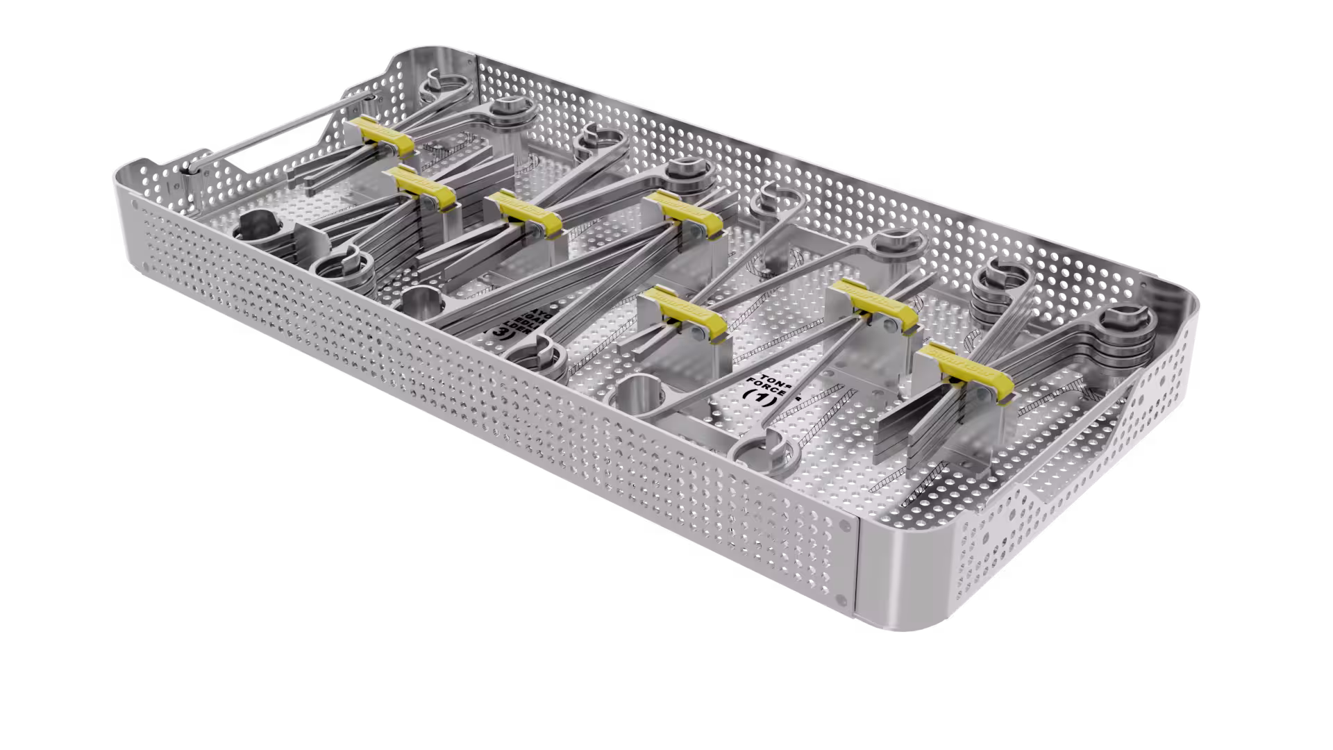 Silkscreen illustration of each instrument for quick and easy placement in its dedicated bracket.
